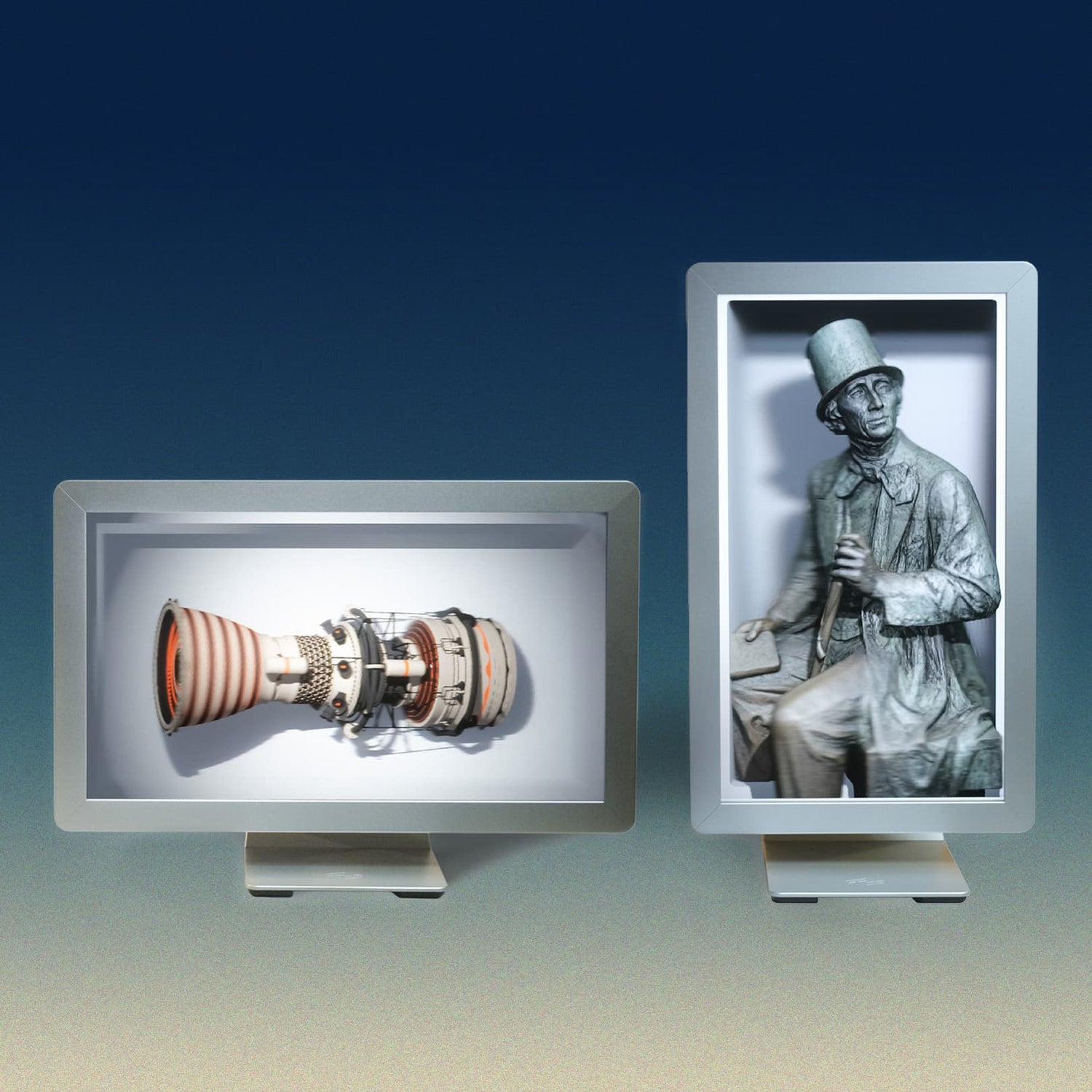 - A true holographic display for 3D content that can be viewed with groups of people, no headset required.